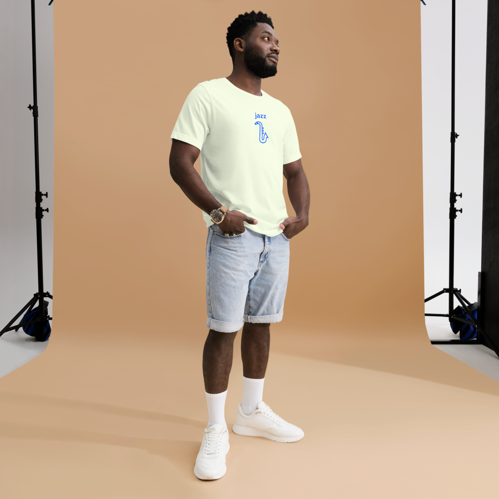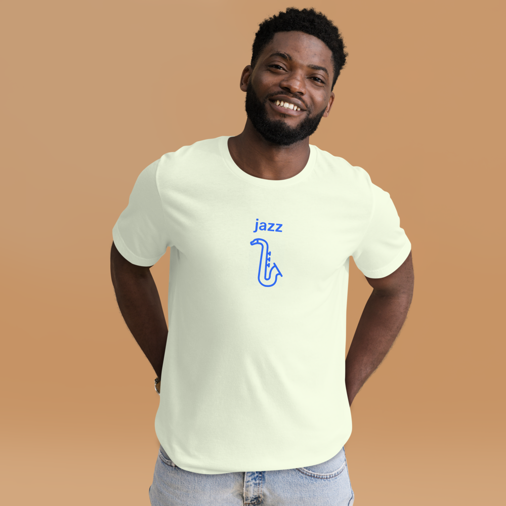 What is jazz music? Who knows! It's got the saxophone and piano and it absolutely rips baby! Love improvisational funky jazz with this t-shirt.