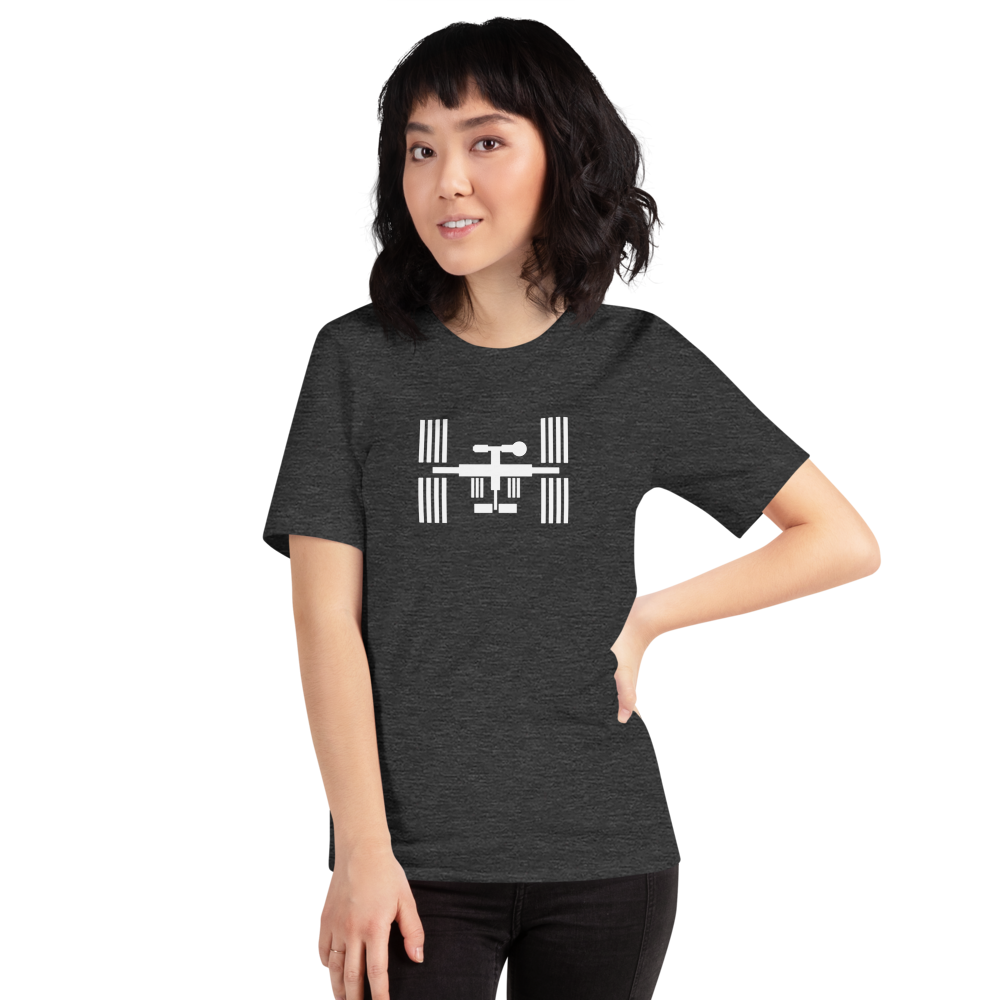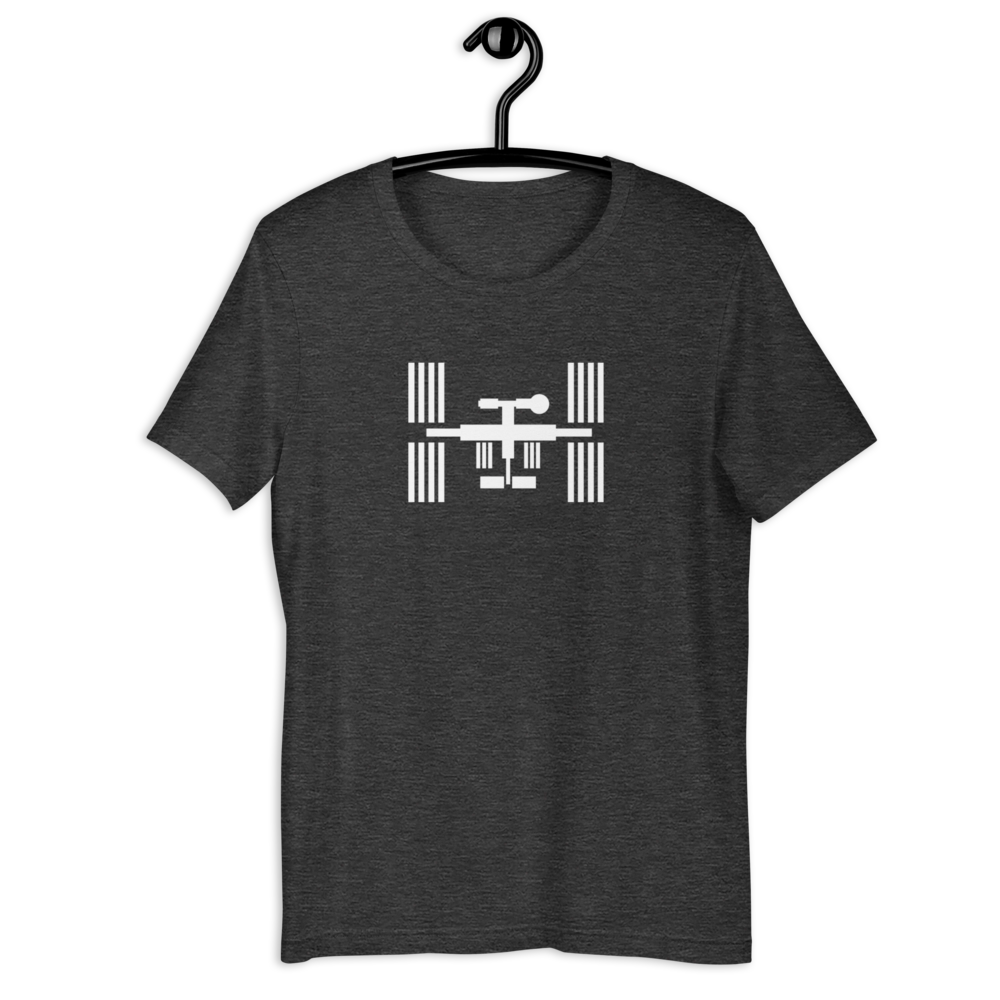 The International Space Station (ISS) is a giant orbiting laboratory created by many nations in the hopes of fostering world piece and cooperation. Womp womp. Buy this t-shirt.