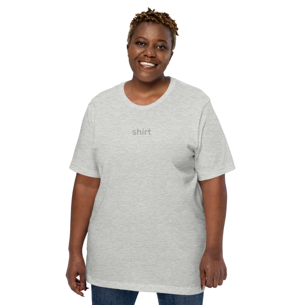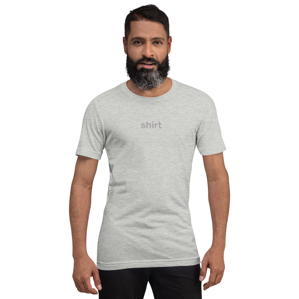 This t-shirt just says the word shirt. It's simple, and that's why we like it.