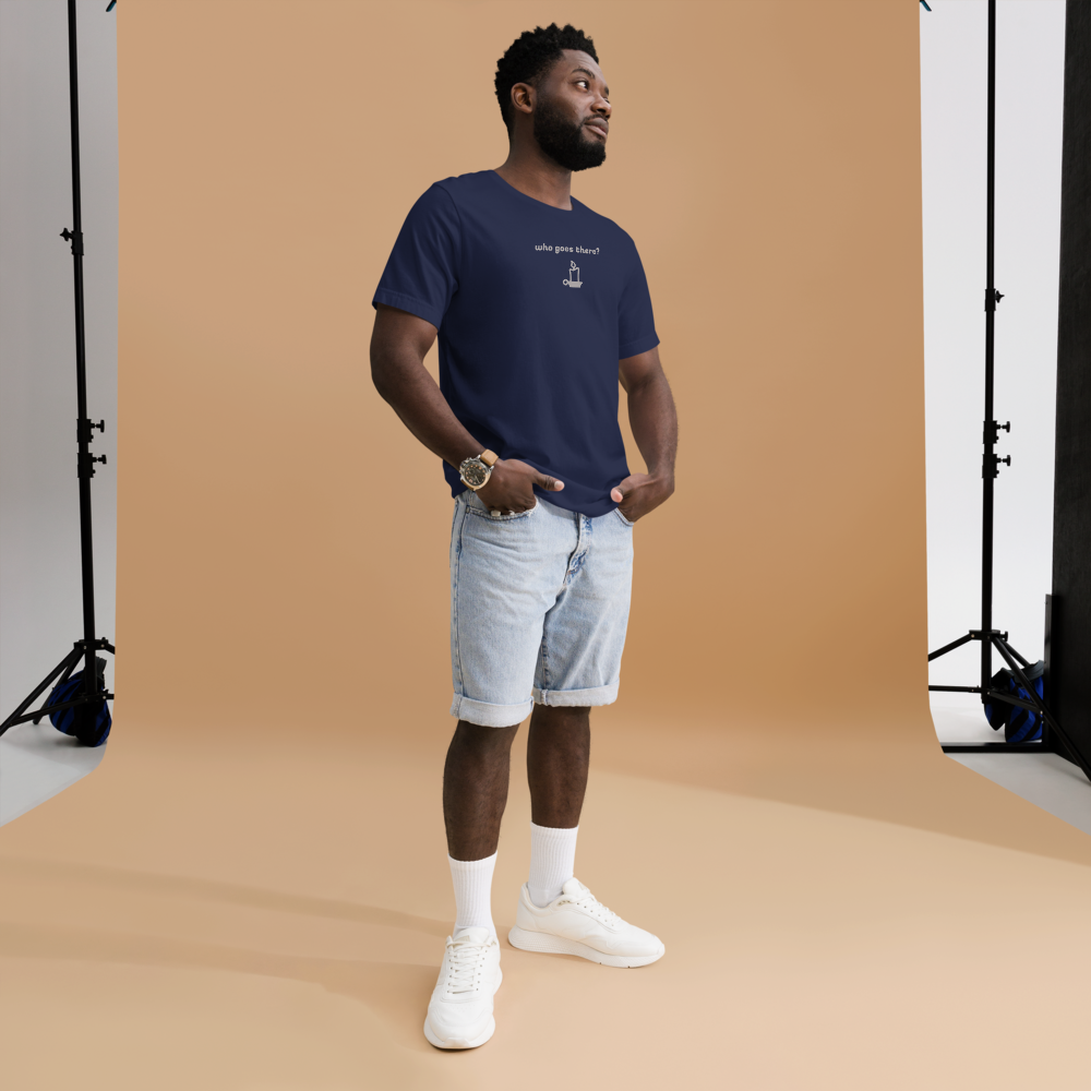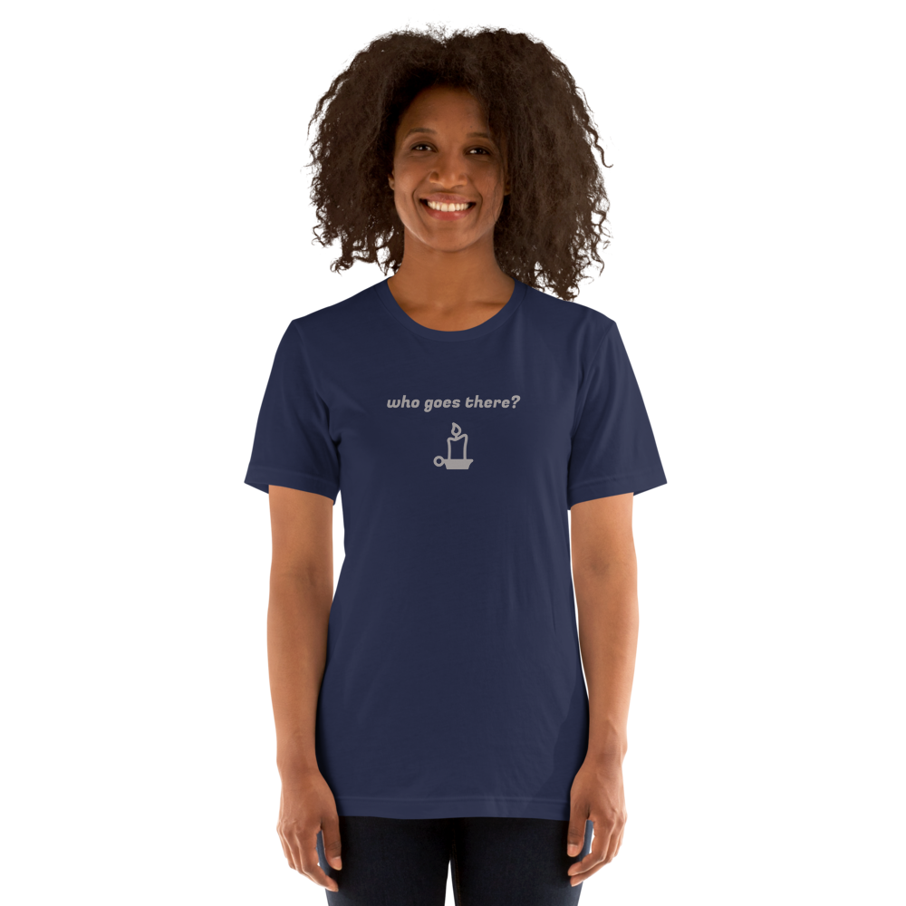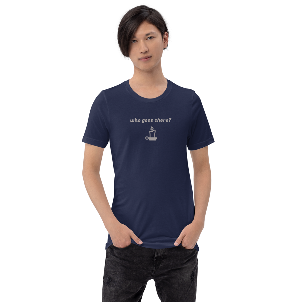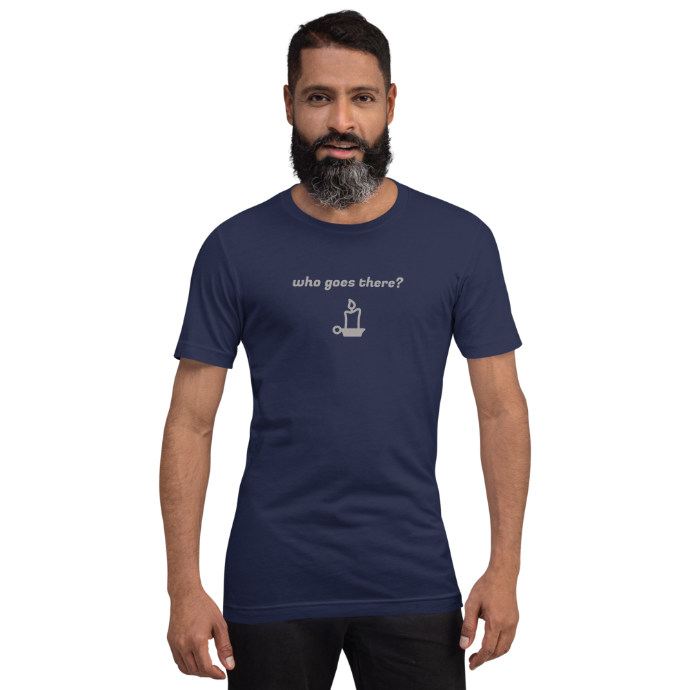 In the middle of the night, a candle lights your way. A sound from the other room. Or the other ... world? Who goes there? Foul ghoul! Check out my cool t-shirt!