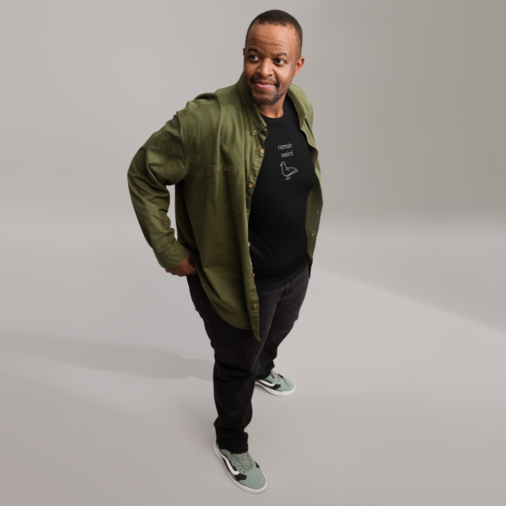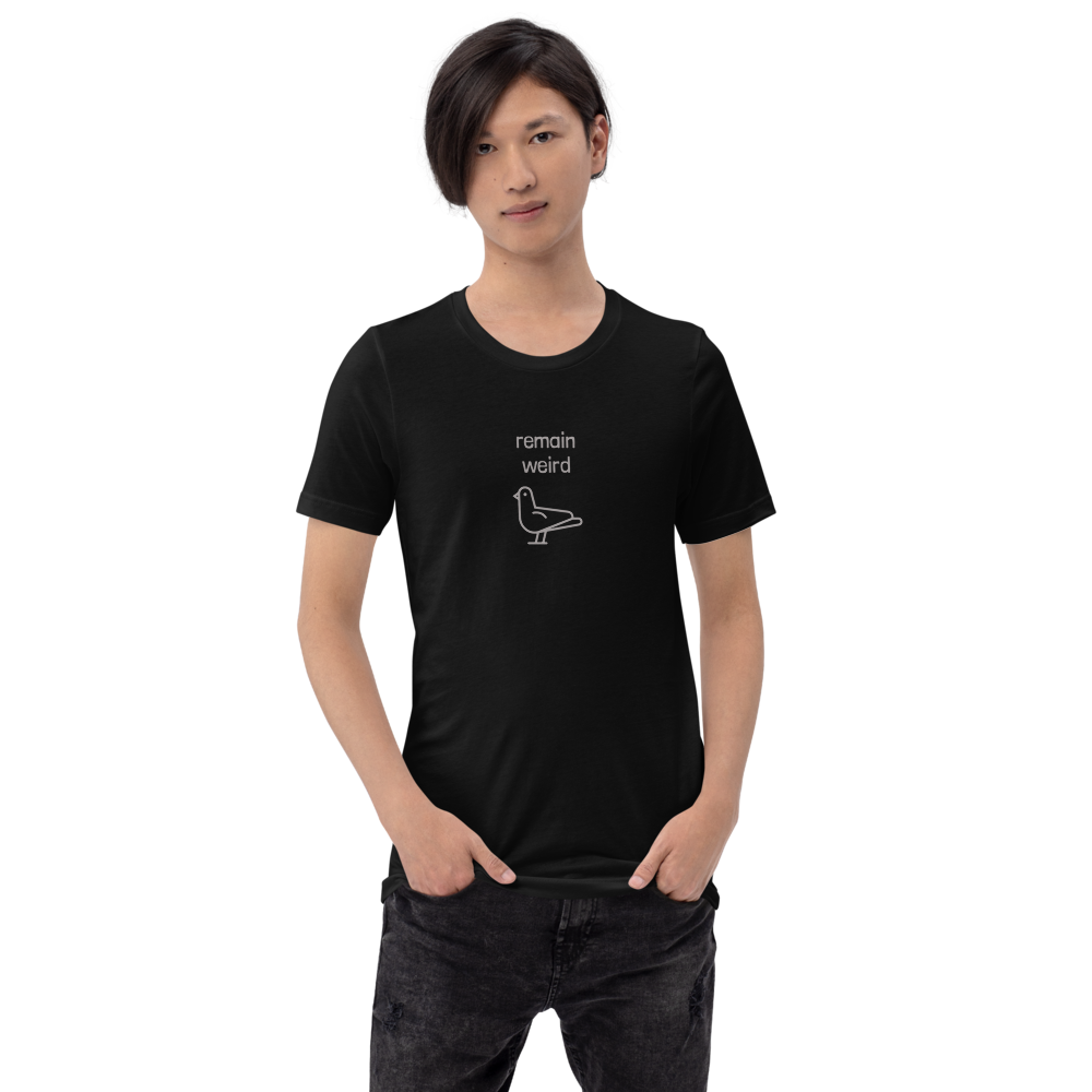 You are weird, why else would you be here? Here's a bird. Also weird. Remain weird like this bird in this t-shirt.