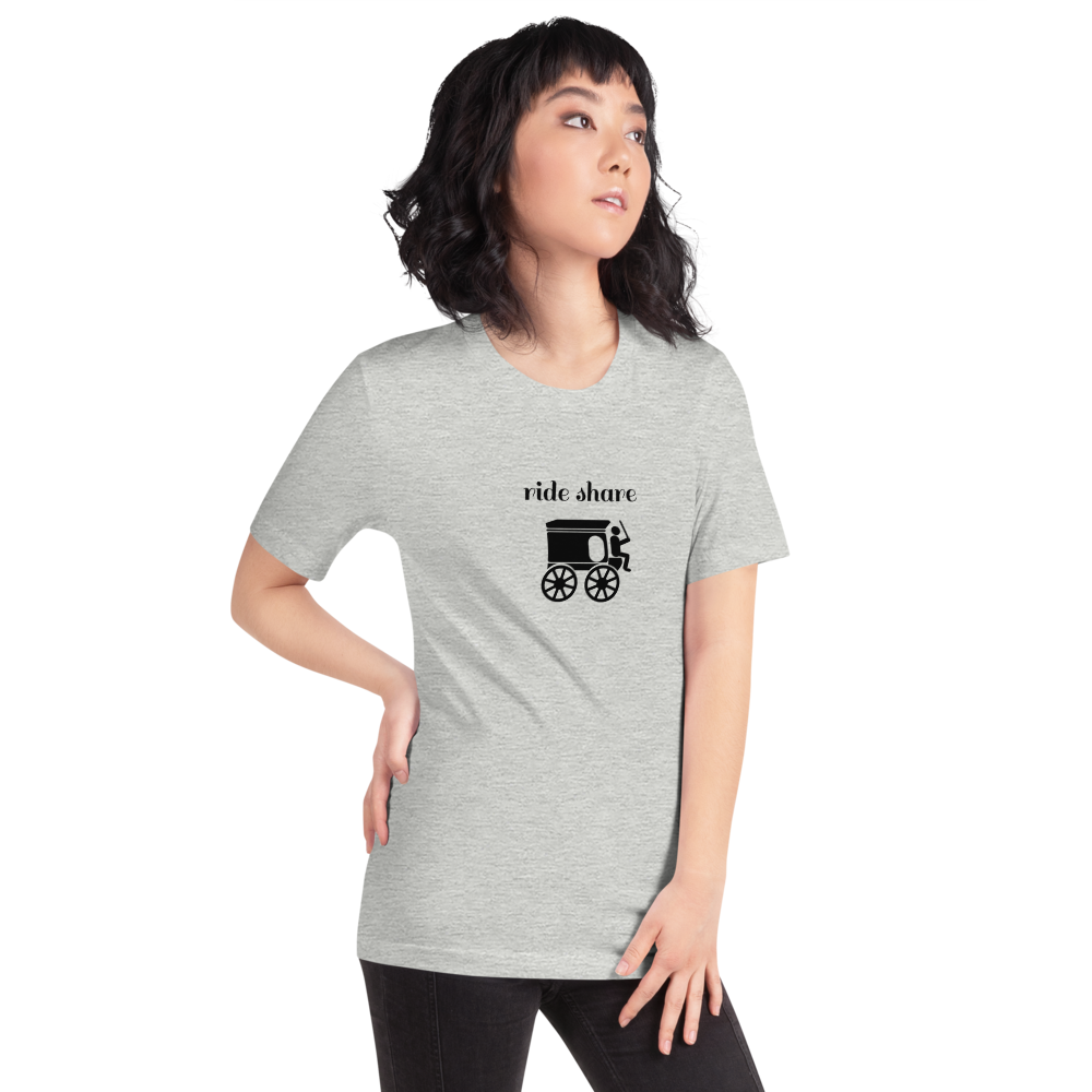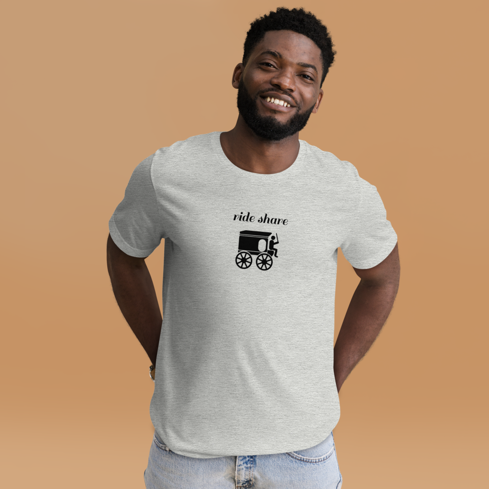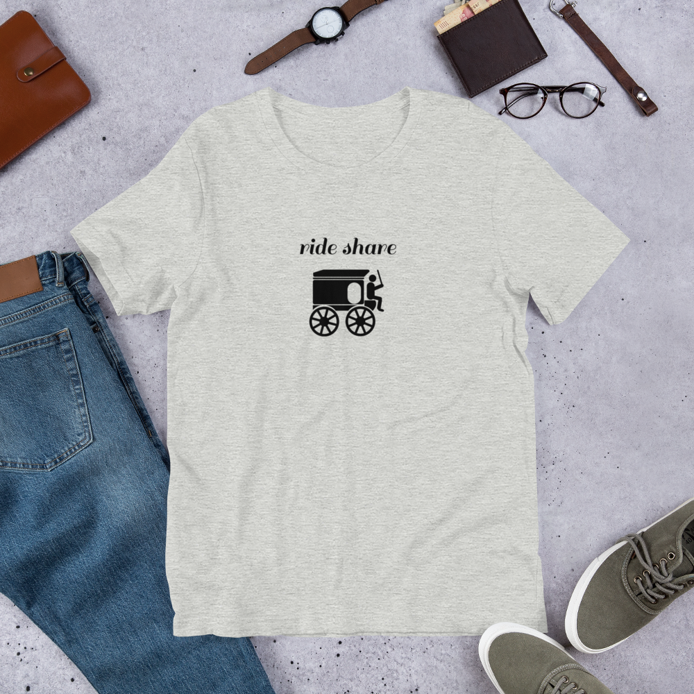 It used to be that ride-sharing was horse-drawn buggy affair. But now with Uber and Lyft, things are more complicated. Proclaim your desire to return to the Ride Share days of yore with this awesome t-shirt.