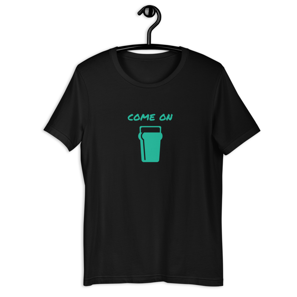 Come on, have a beer. Just one. Come on. And wear this shirt. Come on.